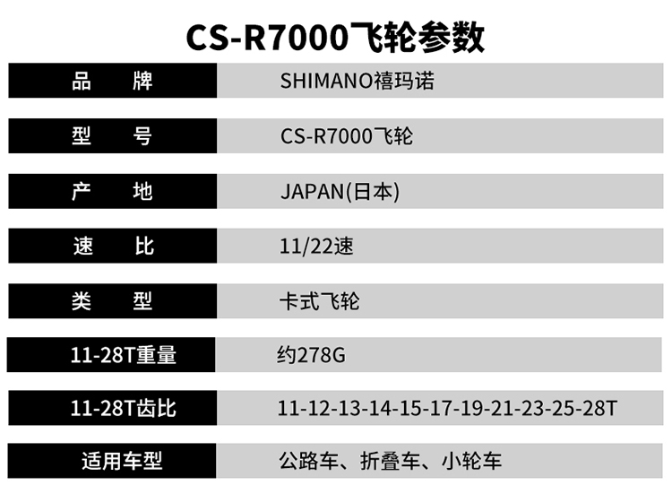 SHIMANO喜玛诺山地车自行车飞轮R7000 11-28T公路车飞轮塔轮配件