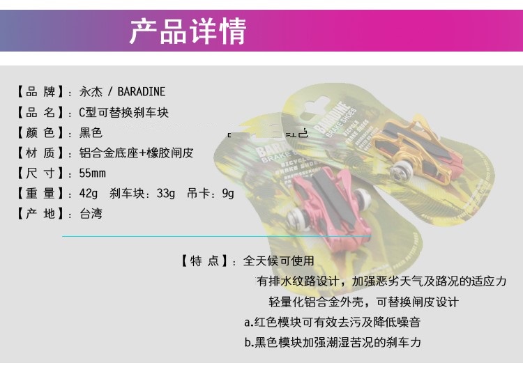 台湾永杰BARADINE 公路车刹车块471C山地刹车皮铝合金自行车闸皮
