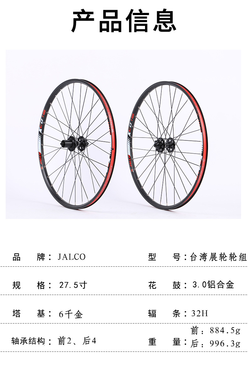 JALCO台湾展轮自行车轮组27.5寸 3.0花鼓山地自行车快拆版轮组