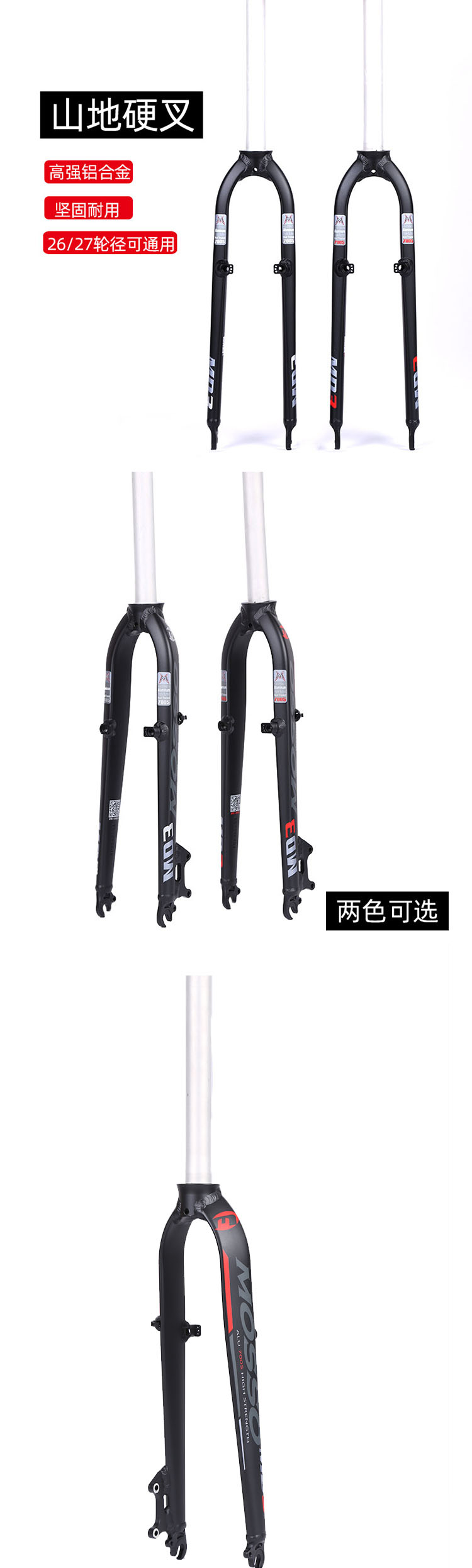 MOSSO峰大山地前叉MD3硬叉26/27寸铝合金自行车前叉