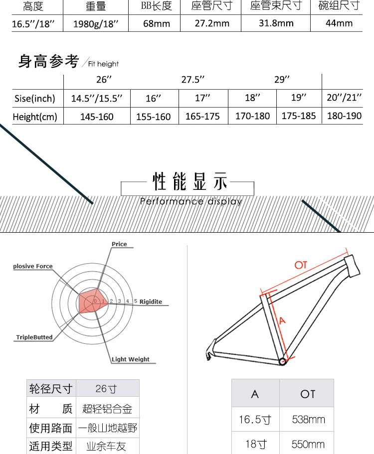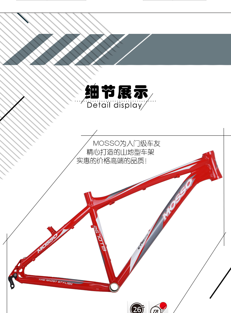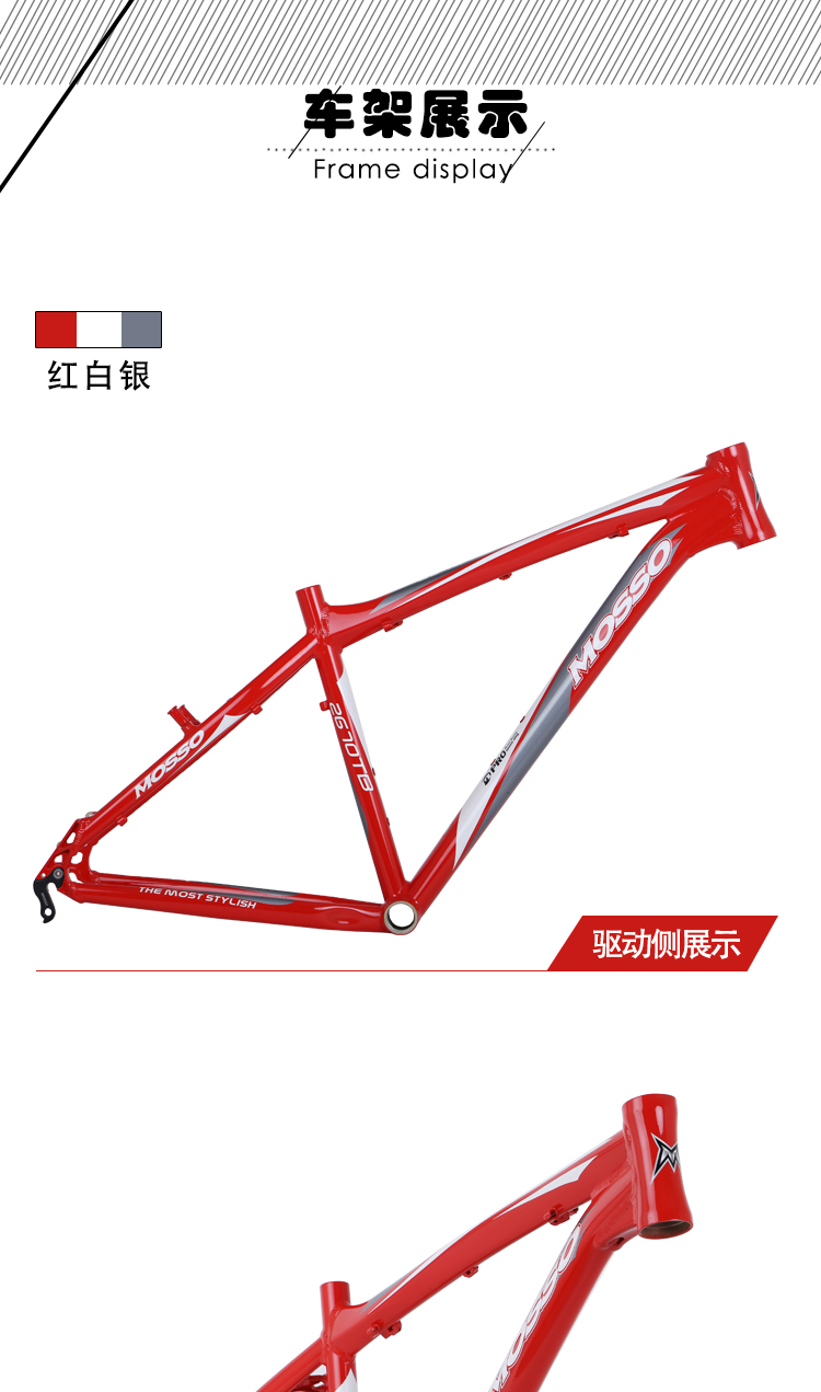 MOSSO山地车自行车车架2670TB铝合金车架26*18寸山地车架碟V两用