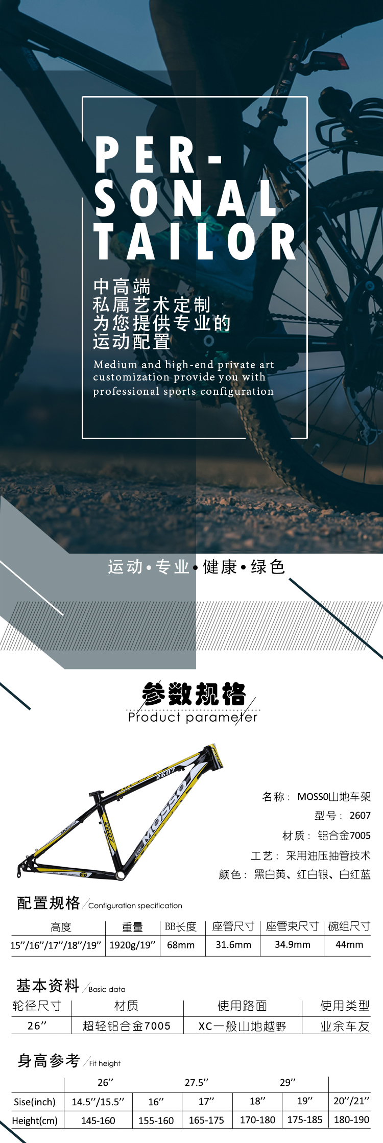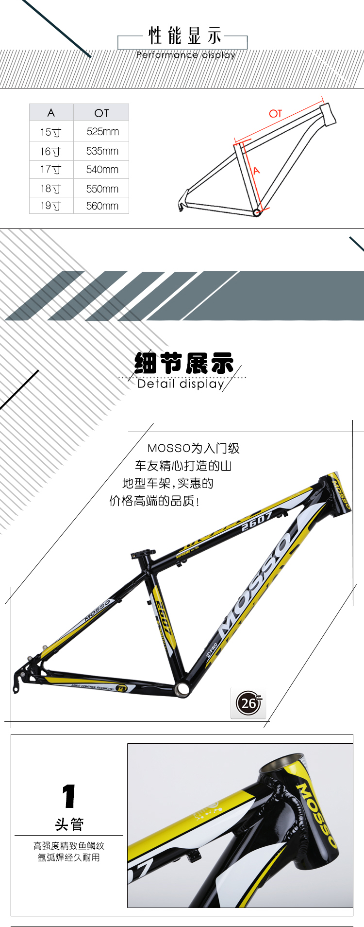 商品名称:MOSSO 2607山地车架