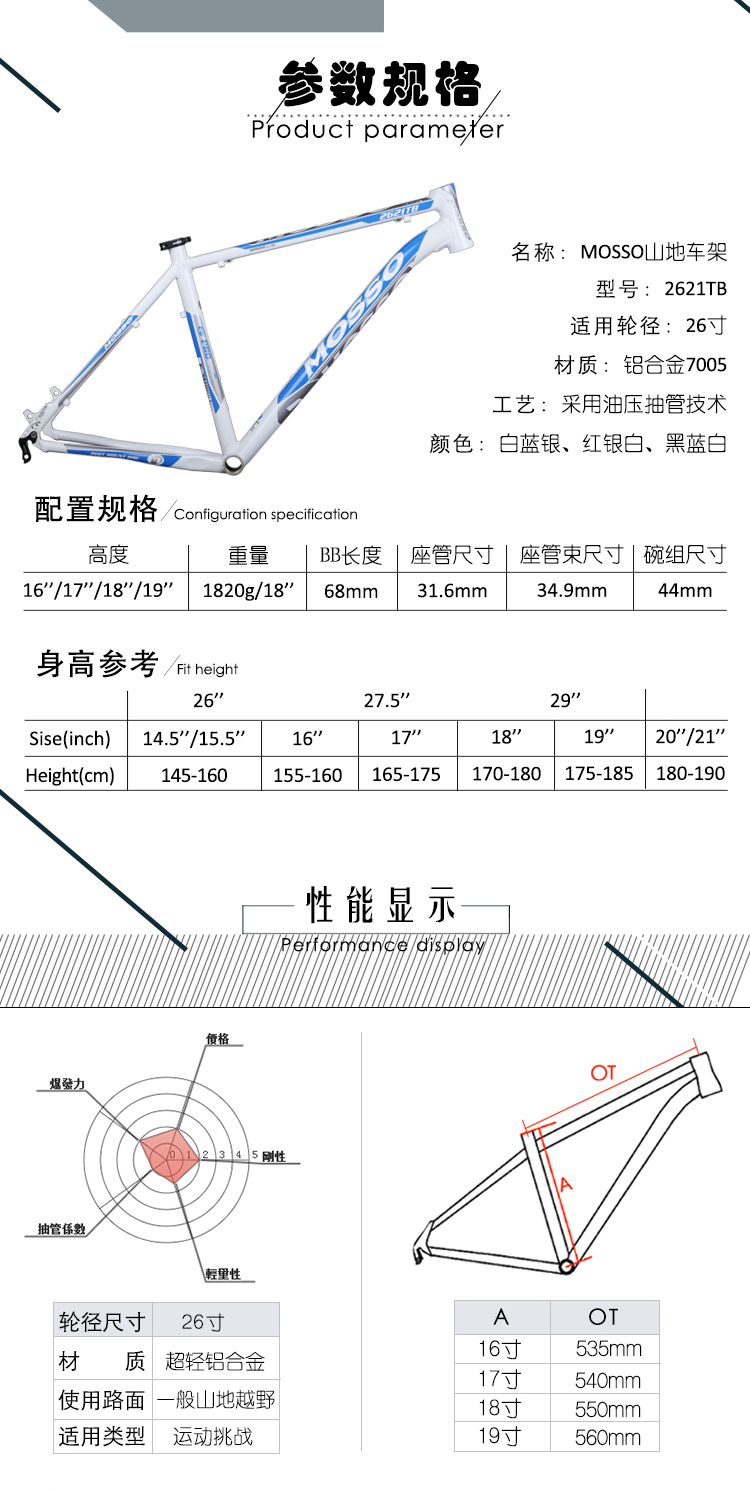 商品名称:MOSSO 2621TB山地车架