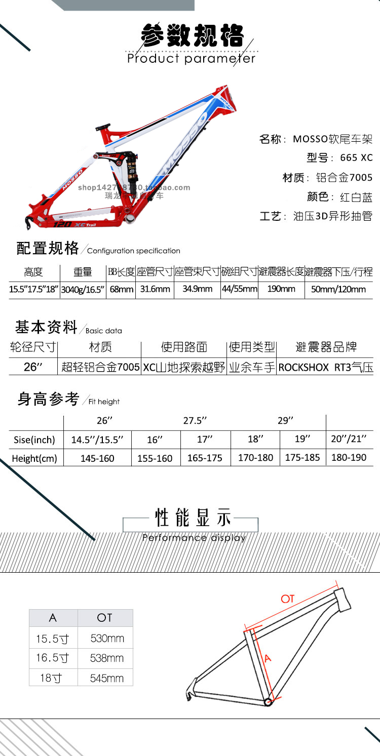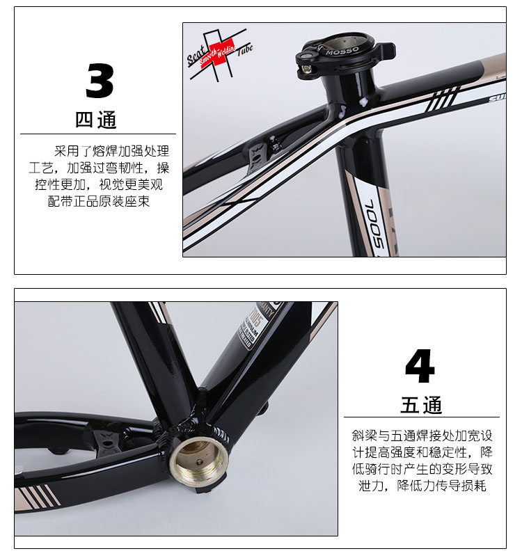 MOSSO山地自行车架 铝合金619XC2 带座束自行车架26*17/18寸架子