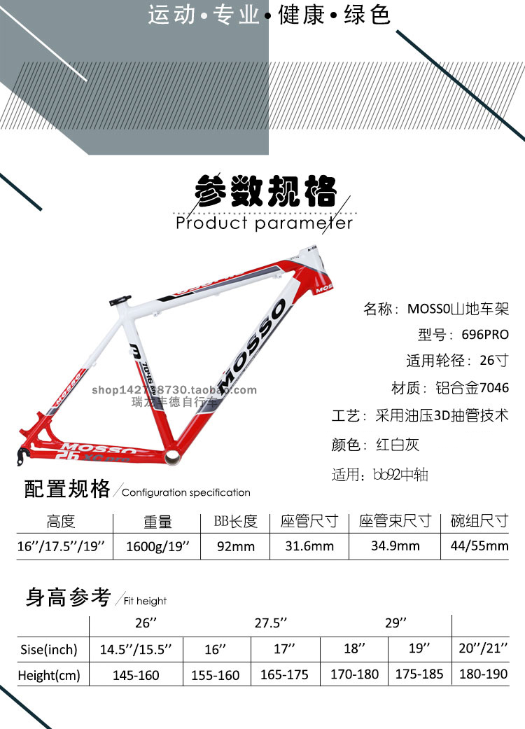 商品名称:MOSSO 696PRO山地车架