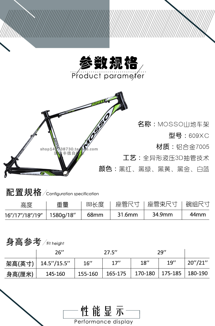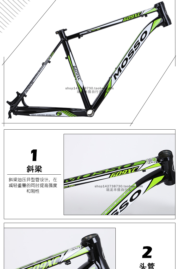 MOSSO山地车自行车车架铝合金609XC自行车架26寸轮径山地车架配件