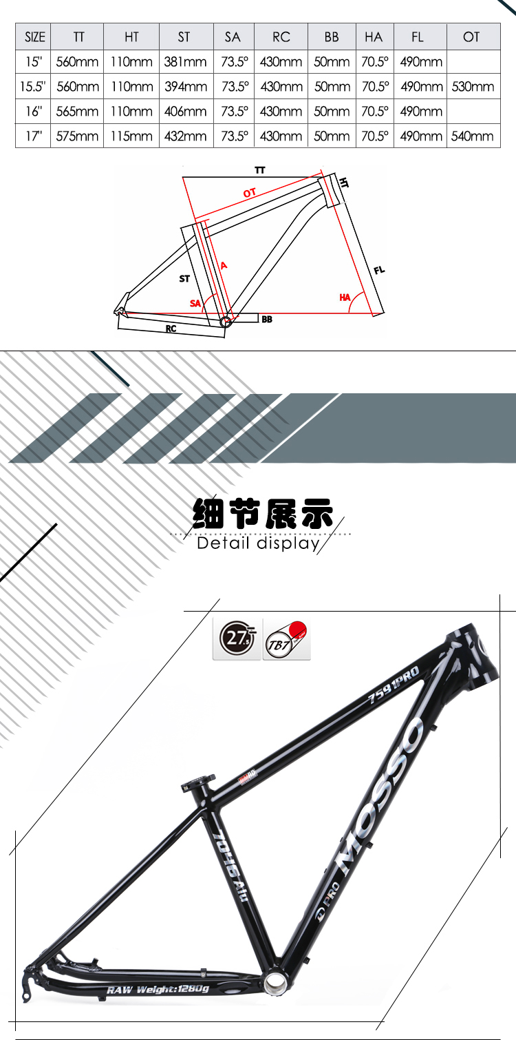 商品名称:MOSSO 7591PRO山地车架