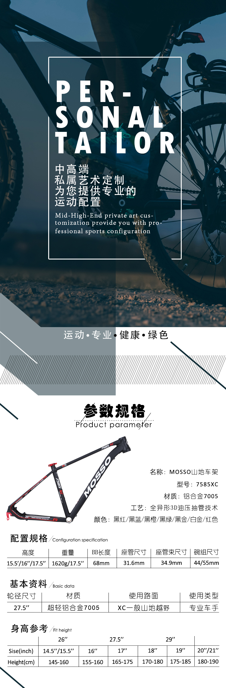 商品名称:mosso 7585xc山地车架