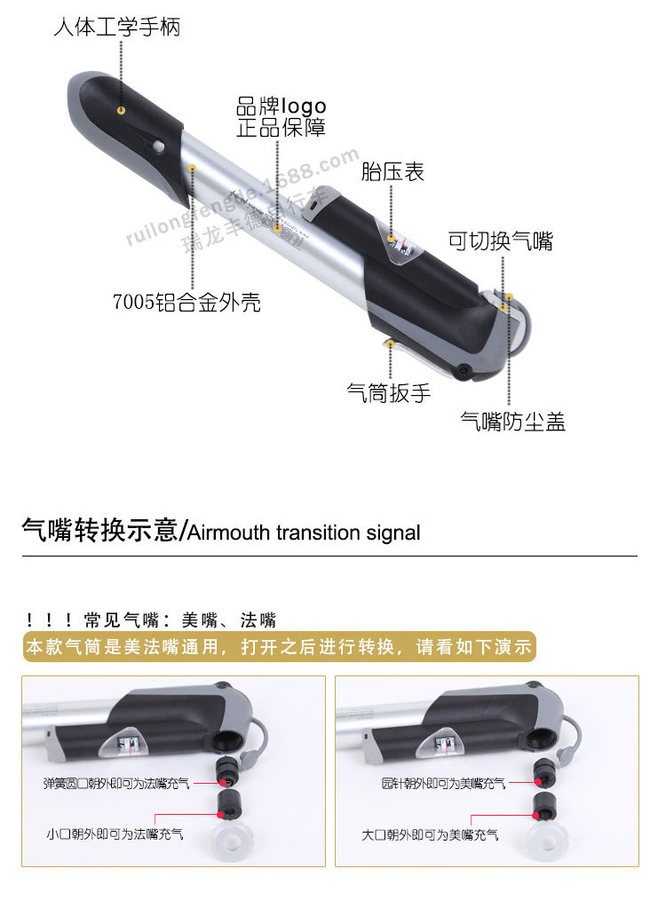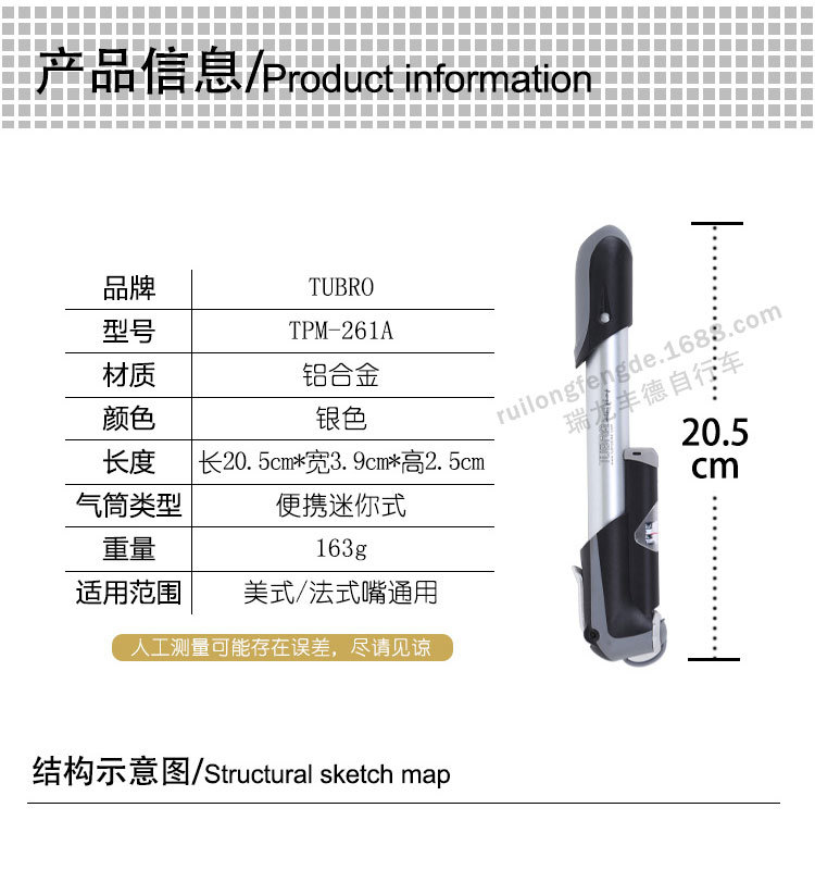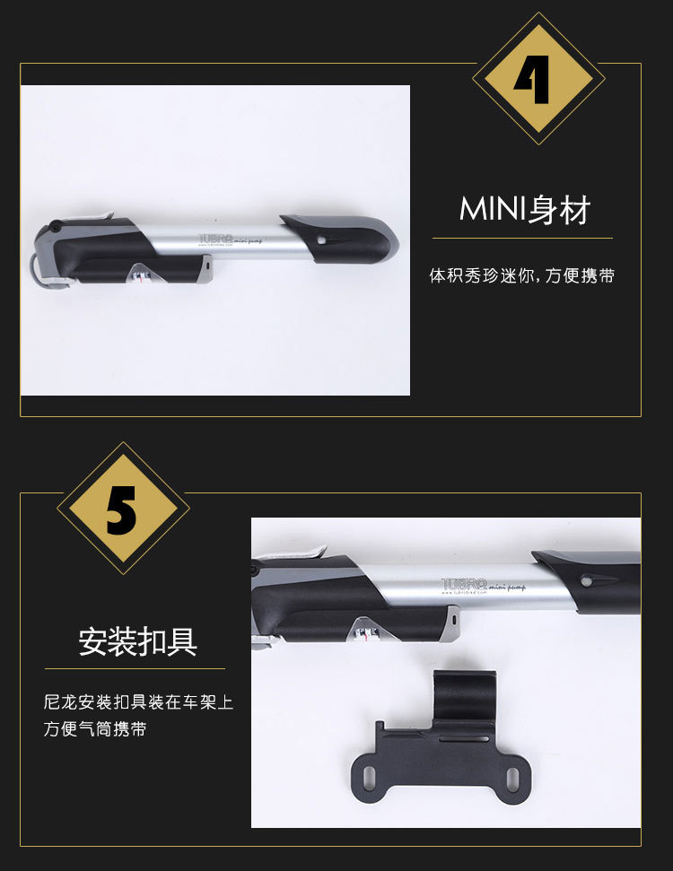 TUBRO途客TPM-261A便携迷你式打气筒 美嘴法嘴通用 20.5cm 163g