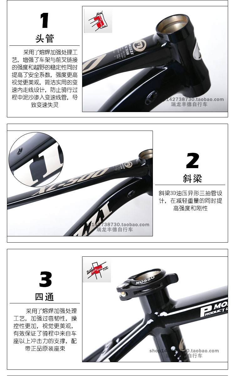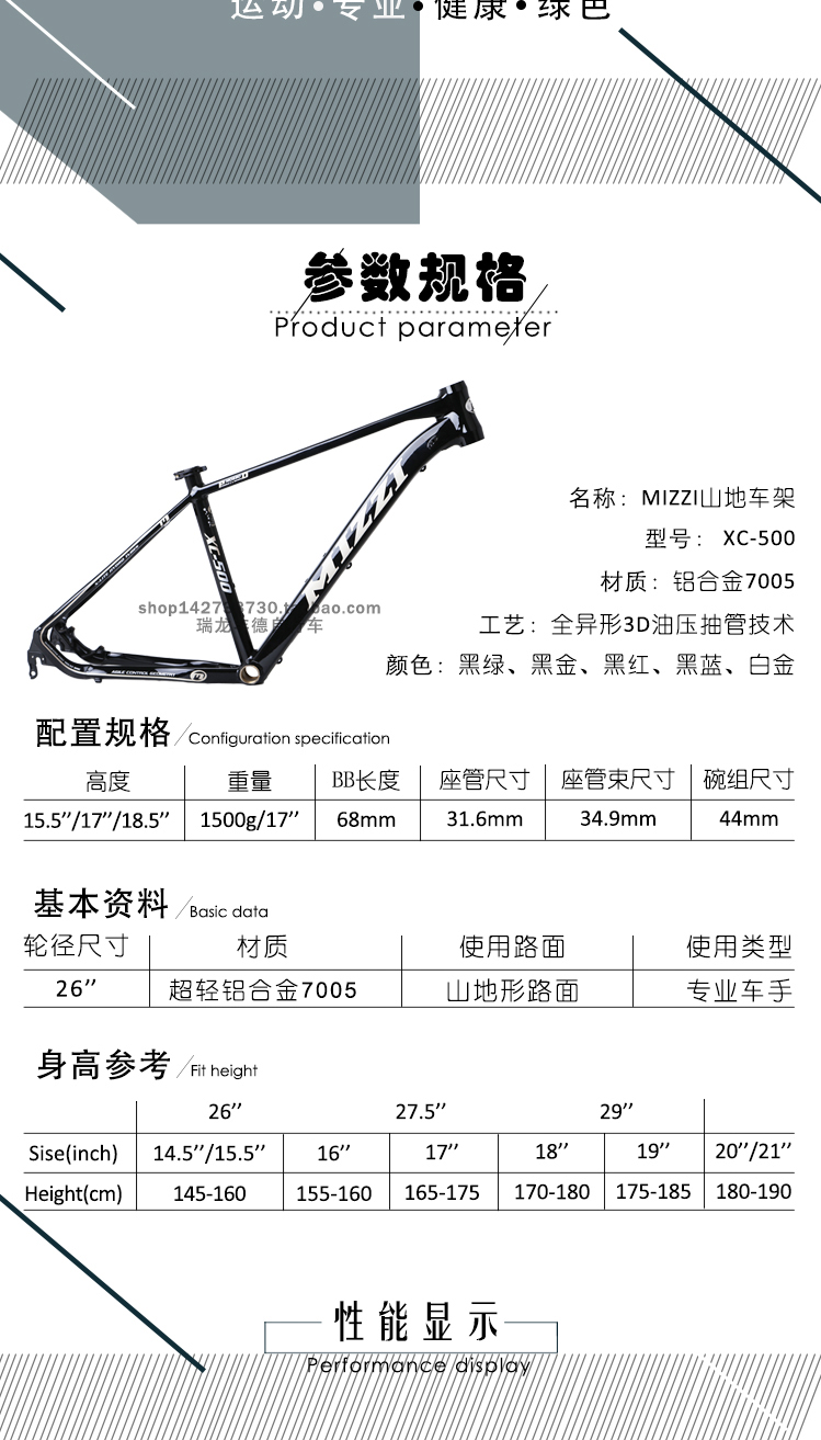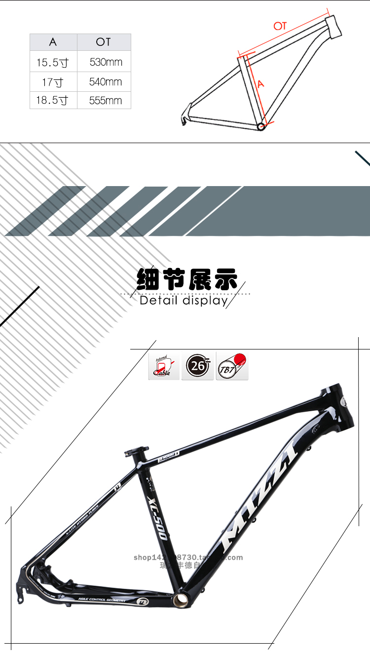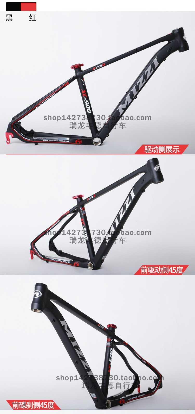 MIZZI山地车车架铝合金自行车车架XC-500碗组+座束山地车车架配件