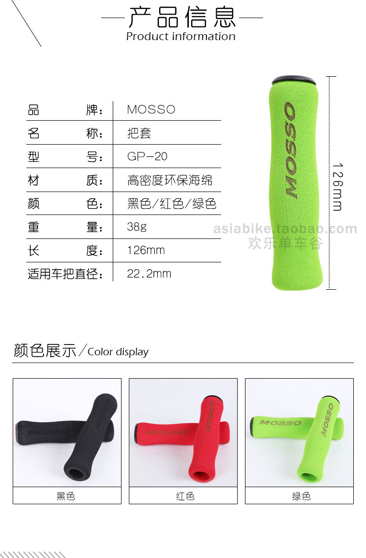MOSSO 自行车防滑把套山地车木棉不对锁GP20手握超软骑行装备