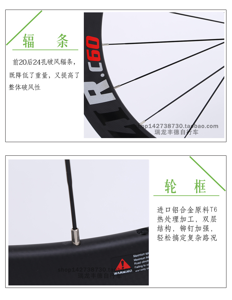 MIZZI公路自行车碳刀RC60轮组700C碳纤维自行车轮毂骑行配件单车轮组