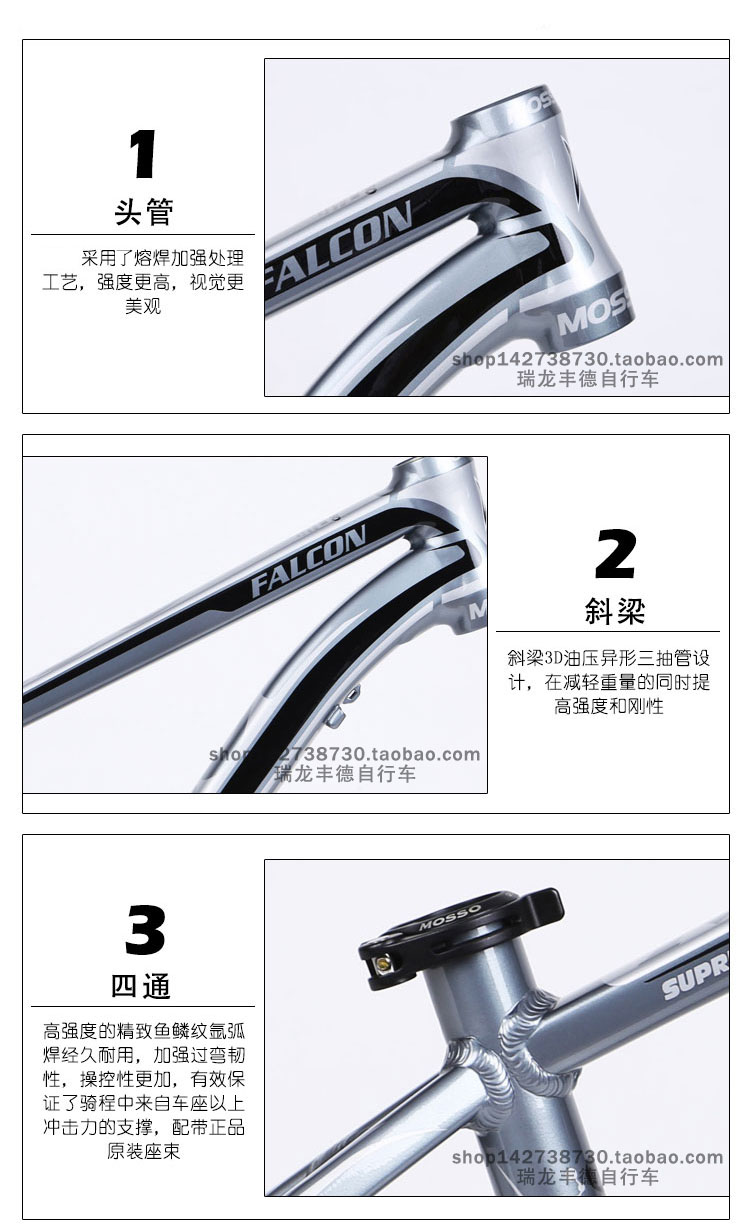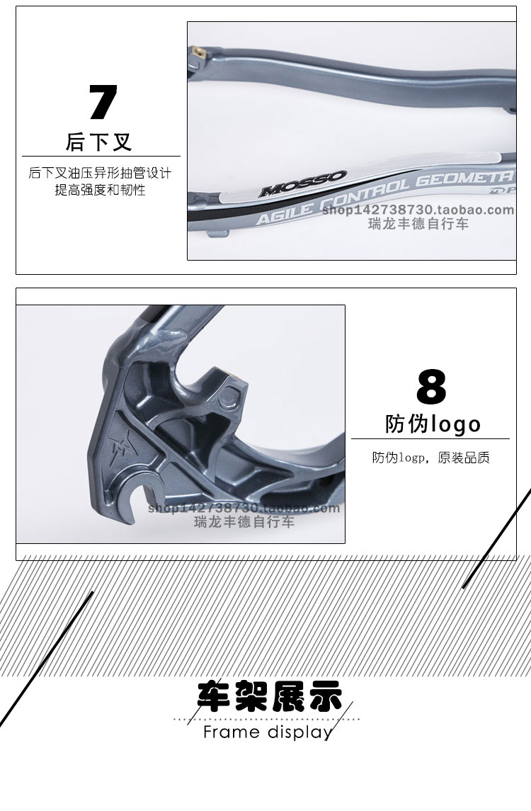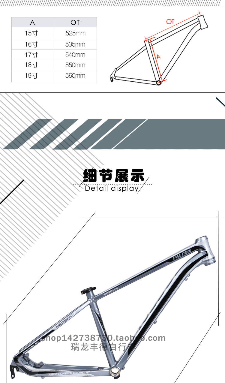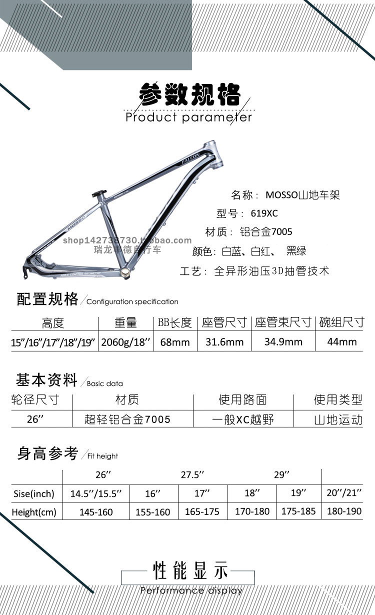 MOSSO山地车车架619XC铝合金自行车车架 带座束26*15/18寸单车架