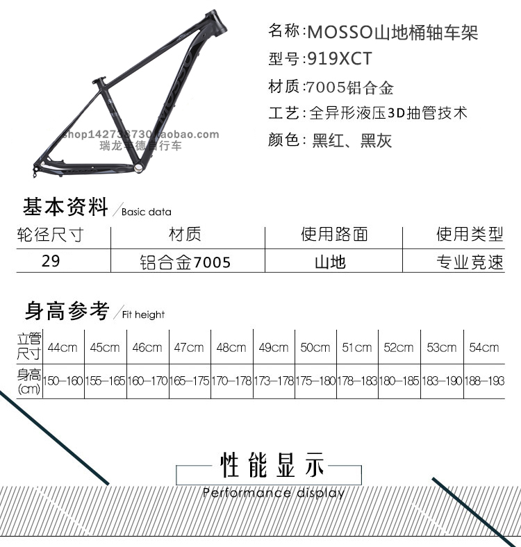 台湾MOSSO峰大山地车架919XCT铝合金7005桶轴自行车车架29寸轮径