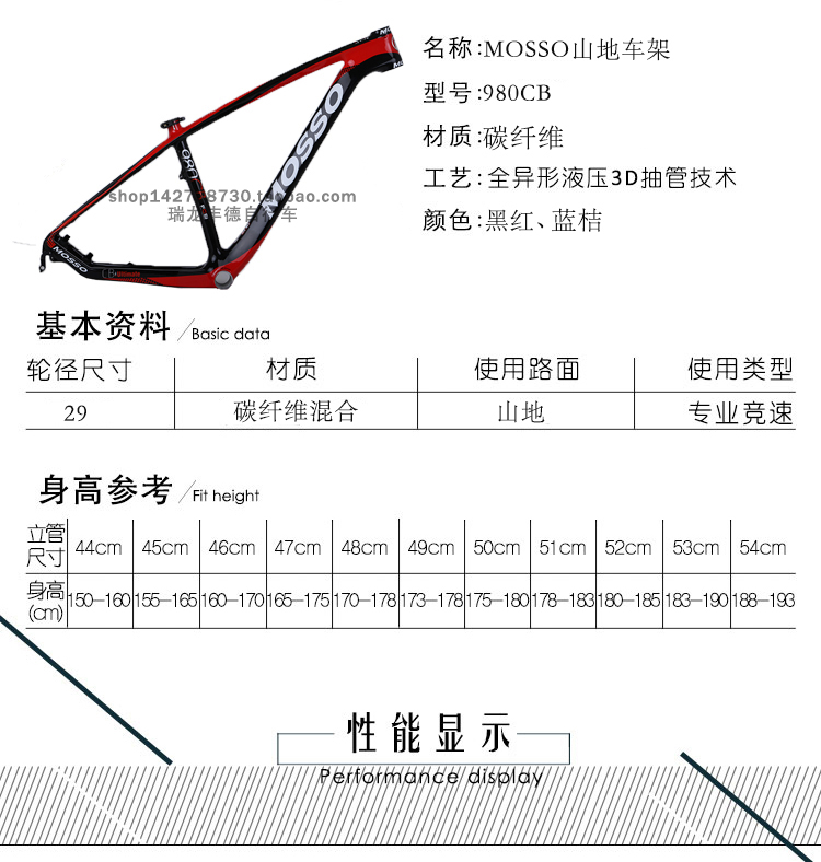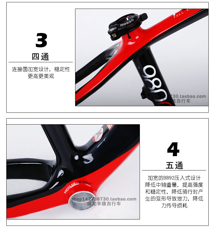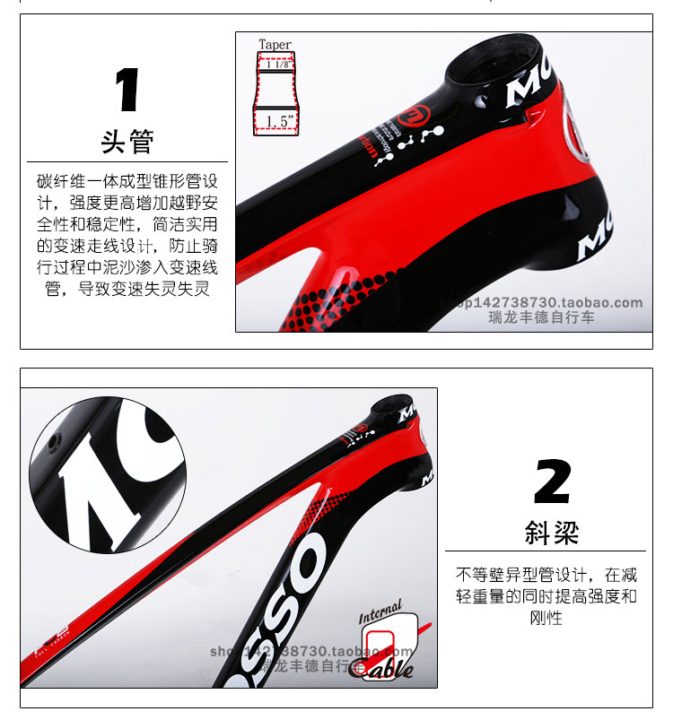 台湾MOSSO峰大山地车架980CB超轻碳纤维一体自行车架29寸轮径车架