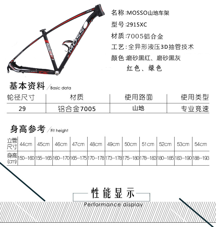 台湾MOSSO峰大29寸山地车车架 7005铝合金 2915XC自行车车架