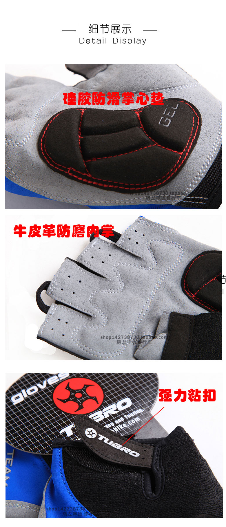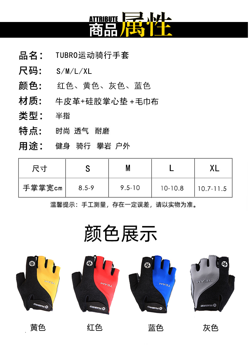 台湾TUBRO骑行防滑手套RACE透气硅胶手套运动健身半指训练手套