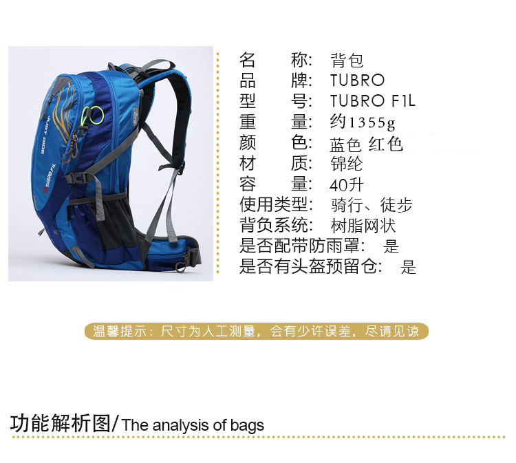 台湾TUBRO途客骑行背包新款F1L大容量 双肩包带龙骨支撑透气背包