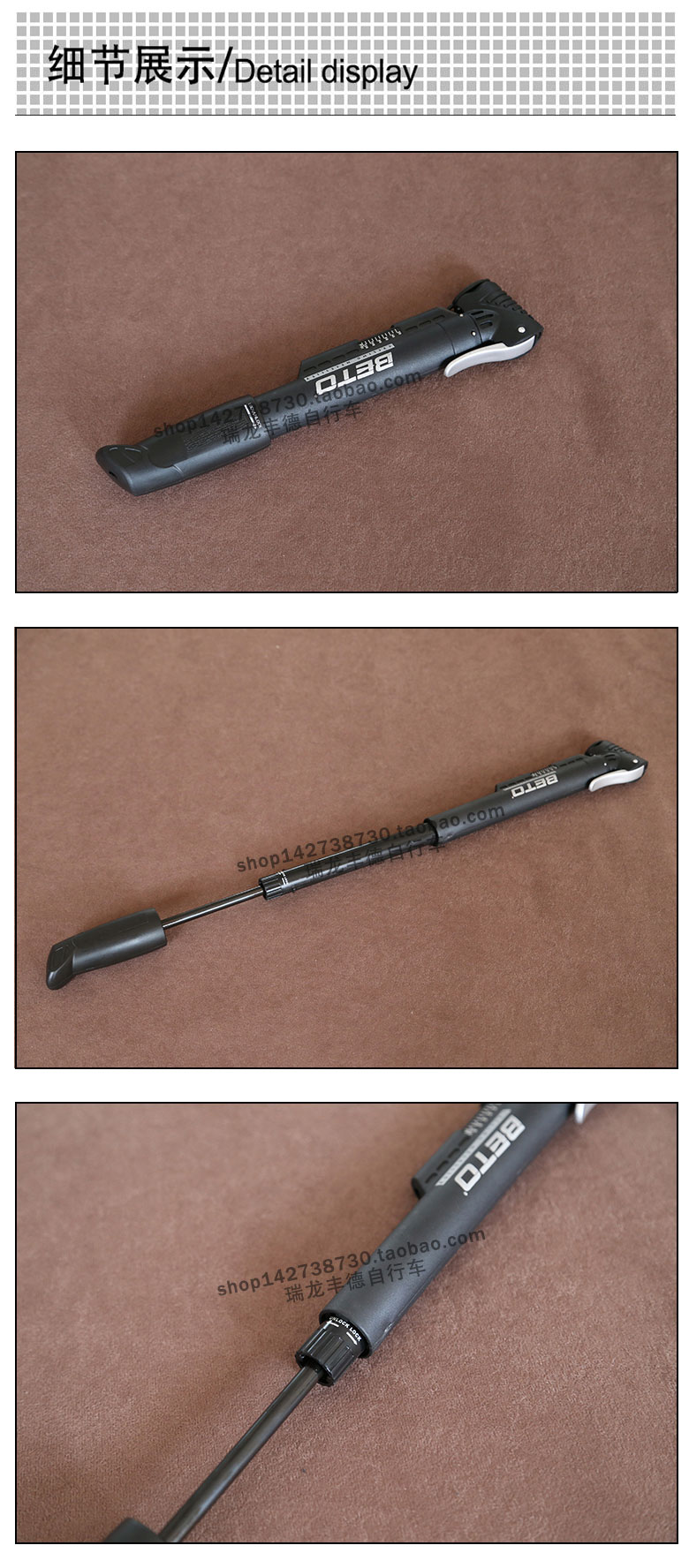 BETO自行车打气筒伸缩式便携气筒山地公路折叠车气筒CLD029双气咀
