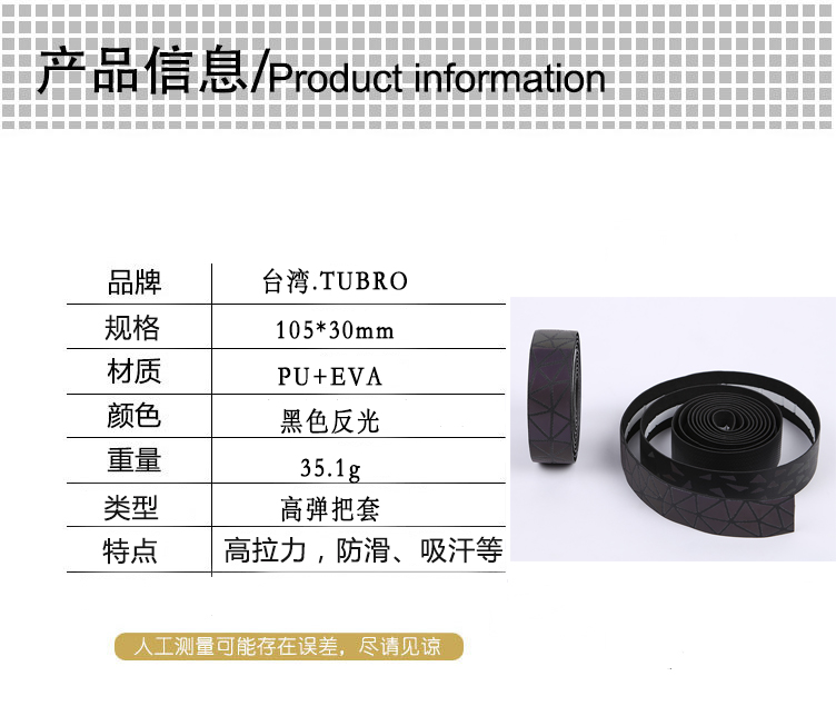 商品名称:台湾TUBRO途客自行车把带黑色反光公路山地折叠车把带装饰