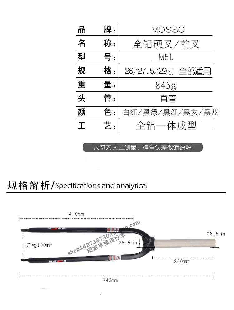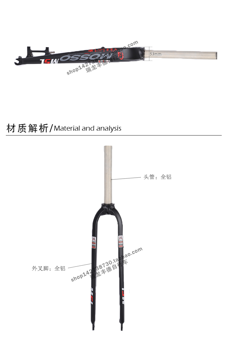 商品名称:MOSSO硬叉新款M5L自行车前叉 碟刹专用铝合金前叉