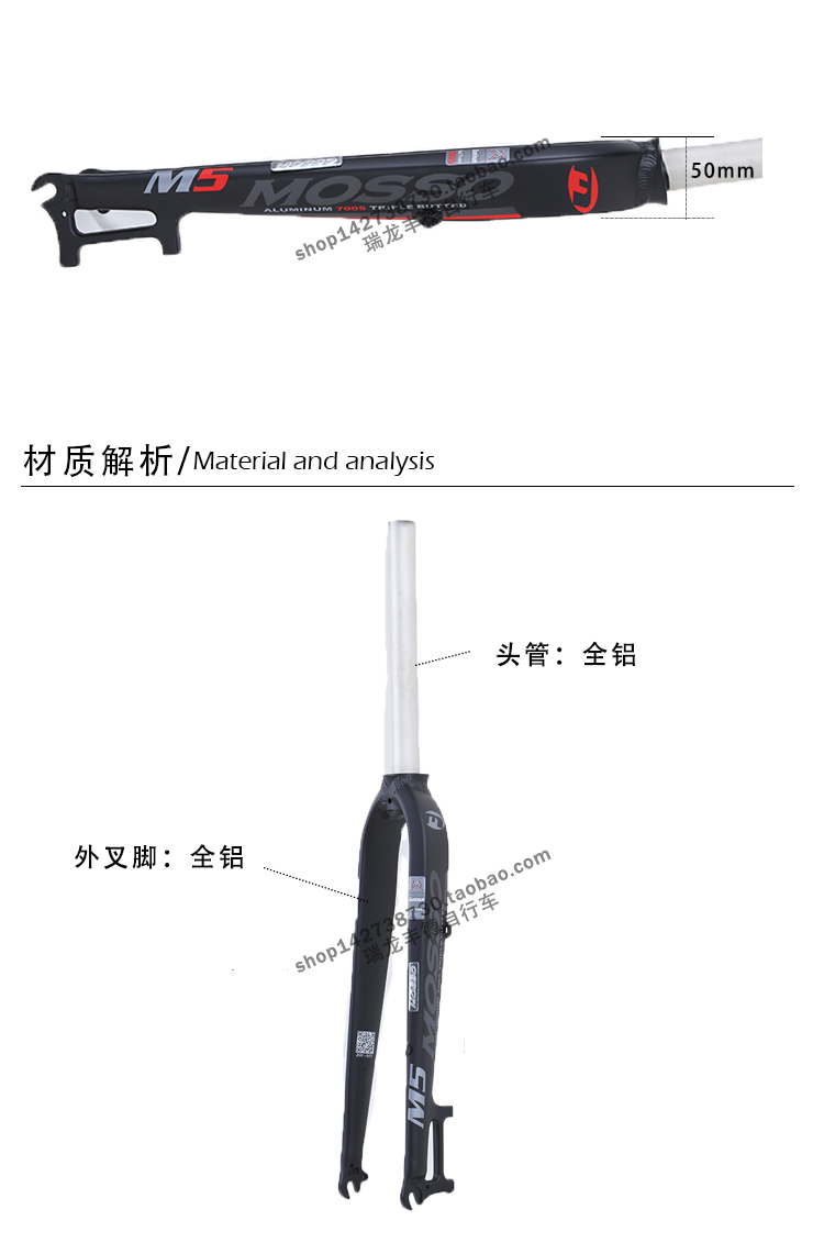 台湾MOSSO峰大山地车前叉M5硬叉 前叉26/27.5寸铝合金自行车前叉