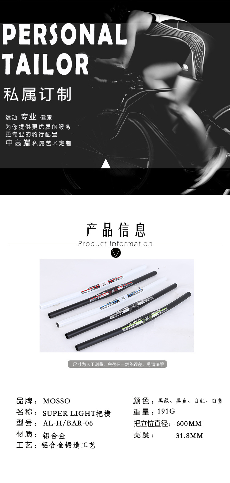 MOSSO自行车直把把横SUPER LIGHT铝合金山地越野车把横31.8*600mm