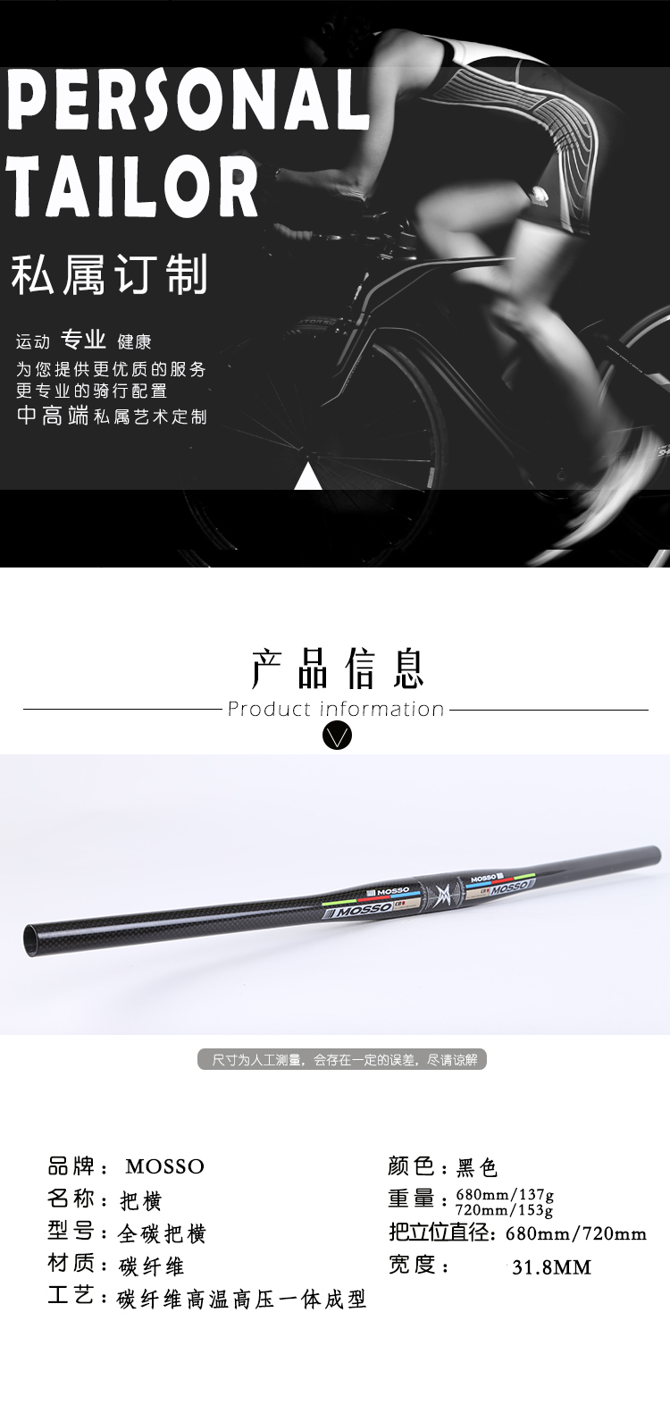 MOSSO峰大碳纤维把横 31.8*720mm/680mm 直把自行车把横