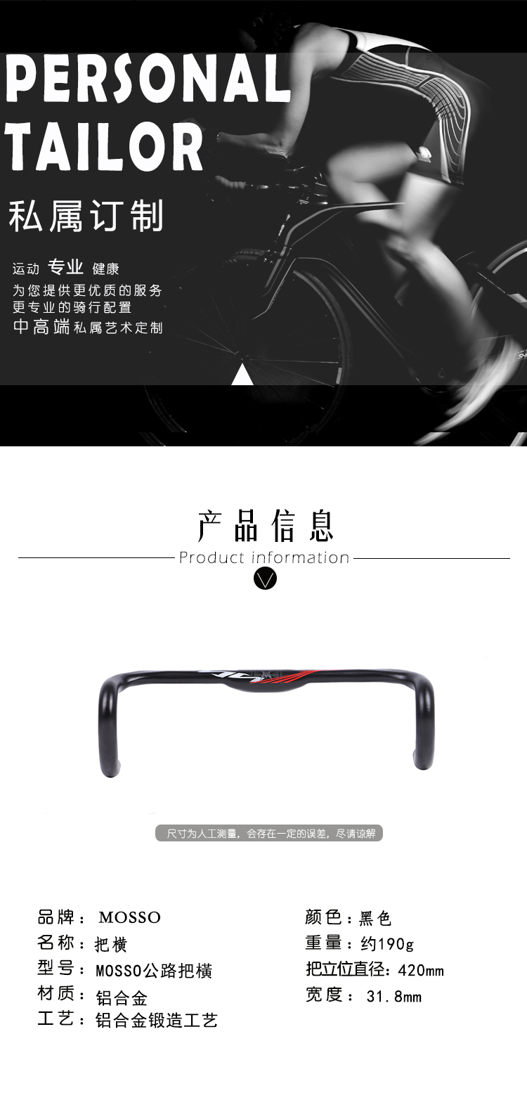 MOSSO峰大公路车把横31.8*420mm 铝合金公路把自行车把横