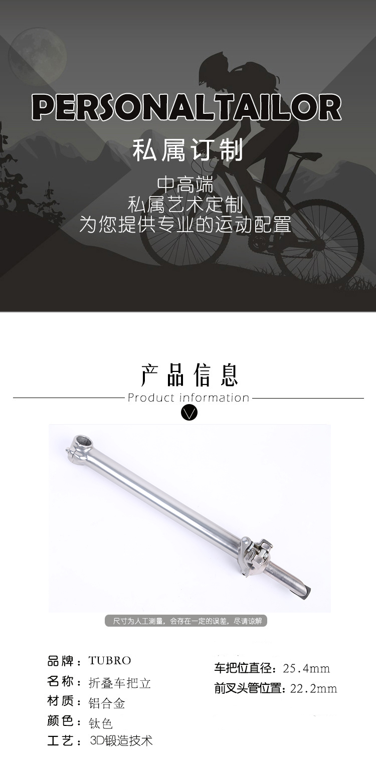 台湾TUBRO折叠自行车把立铝合金折叠山地车把立25.4mm自行车把立