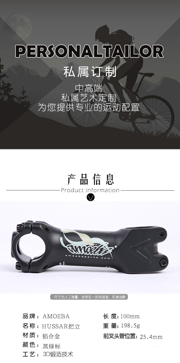 阿米巴AMOEBA自行车把立HUSSAR铝合金25.4*100mm山地车公路车把立