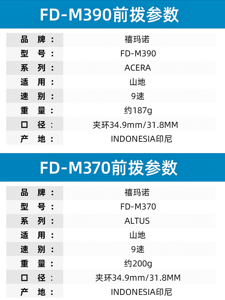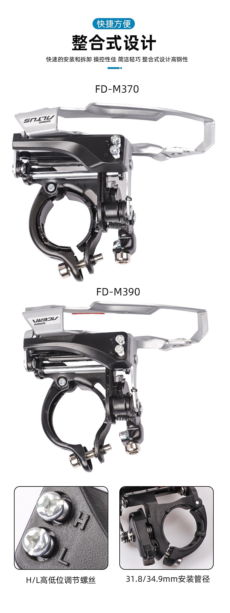 SHIMANO禧玛诺ALTUS FD-M370 M390前拨9速山地车变速器自行车前拨
