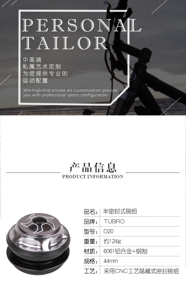 台湾TUBRO山地车自行车半密封式碗组铝合金口径44MM碗组骑行配件