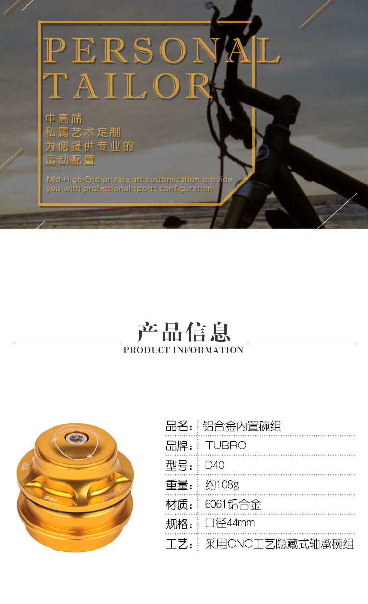 台湾TUBRO山地车自行车公路车铝合金碗组口径44MM骑行配件腕组