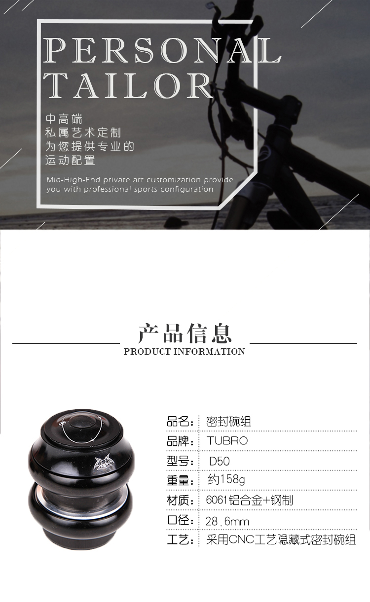 台湾TUBRO山地自行车碗组铝合金外置碗组骑行配件44mm自行车腕组
