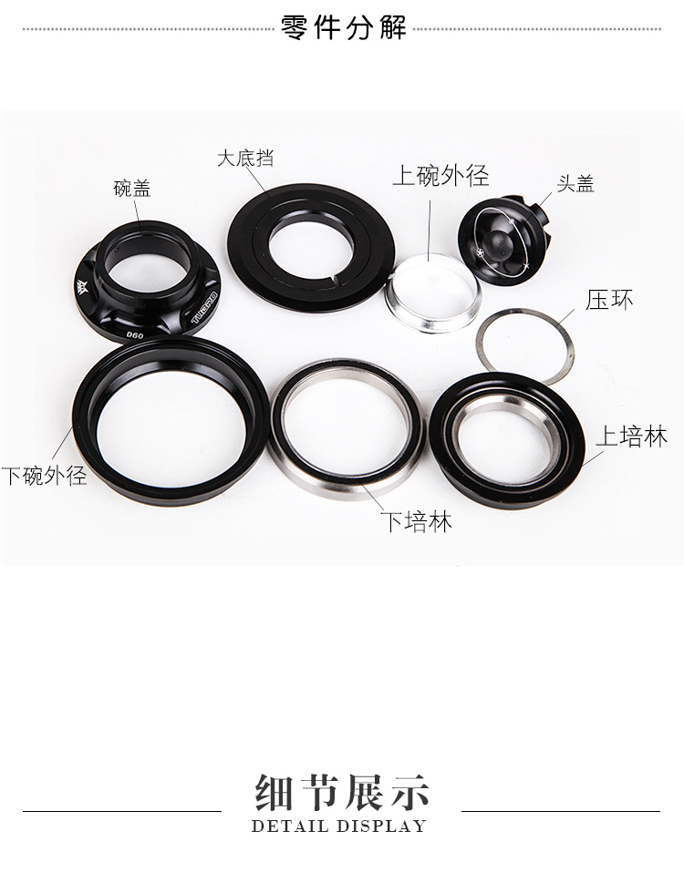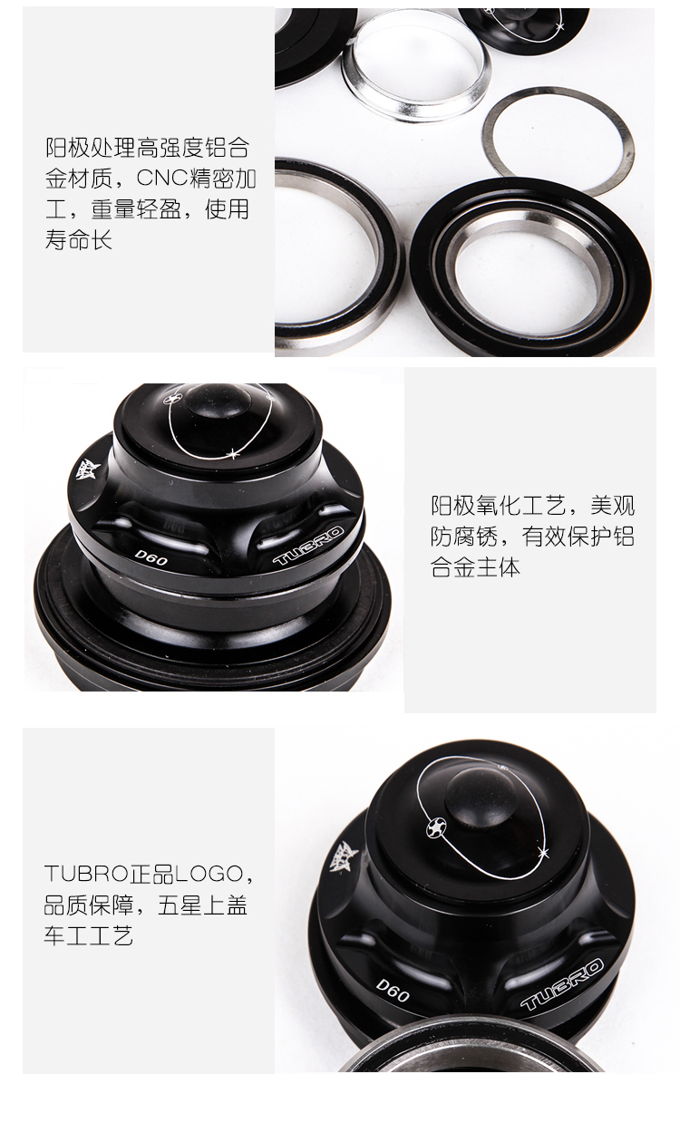 台湾TUBRO山地车自行车碗组D60铝合金公路车腕组44-55MM骑行配件